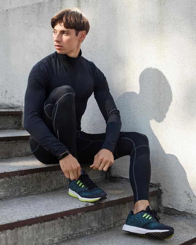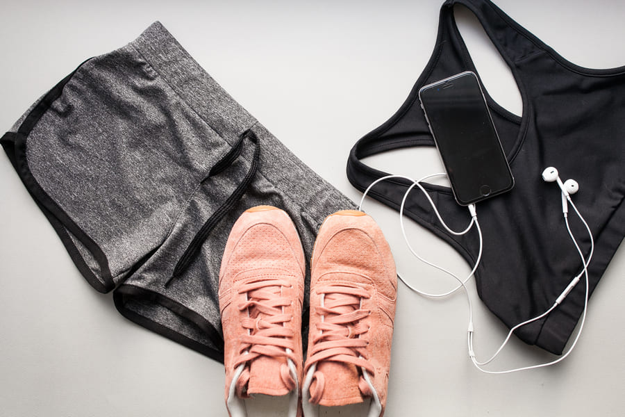 - Нужно искать облегающие или полу облегающие футболки, лосины или шорты из эластичных материалов, отводящие влагу носки.